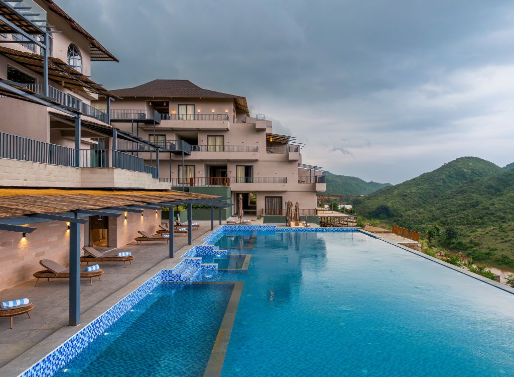 Nanda Hills is a Luxury resort in Udaipur that brings you a harmonious blend of modern luxury and nature’s splendor. Nestled in the City of Lakes, our resort offers a tranquil escape, featuring luxury accommodations with private plunge pools, a host of modern amenities, and stunning views of the surrounding hills. Whether you're seeking a peaceful retreat or an unforgettable celebration, Nanda Hills promises a luxurious stay in Udaipur, perfect for families, couples, and event-goers. .